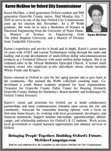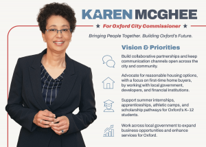 Explore videos, audio interviews, and print materials showcasing Karen's vision for Oxford. Stay informed about our campaign's message and initiatives.